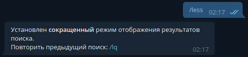 Для некоторых случаев, чтобы было удобнее работать с поиском в боте, предусмотрена команда